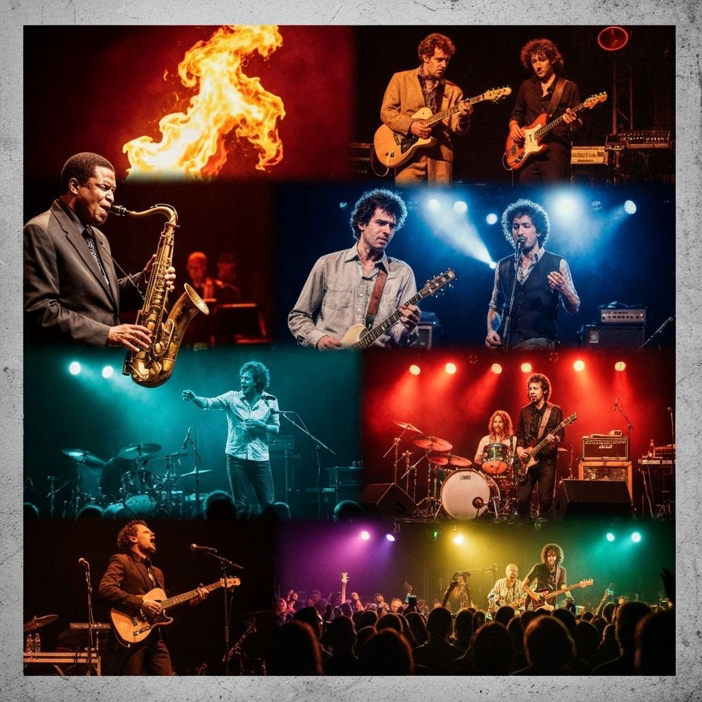 Electrifying live performance showcasing vocal mastery and multi-instrumental skills to a captivated audience.